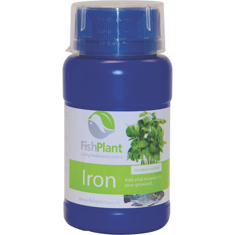 The FishPlant Iron 250ml is a premium product and part of FishPlant's range of top-quality aquaponics accessories. Iron plays an important role in the chlorophyll production process and promotes strong photosynthesis. The element influences the physiological processes and ensures an optimum energy balance. It's the only element, which may not be provided enough by fish waste. Growers use the FishPlant Iron 250ml for optimum plant growth and healthy crops.